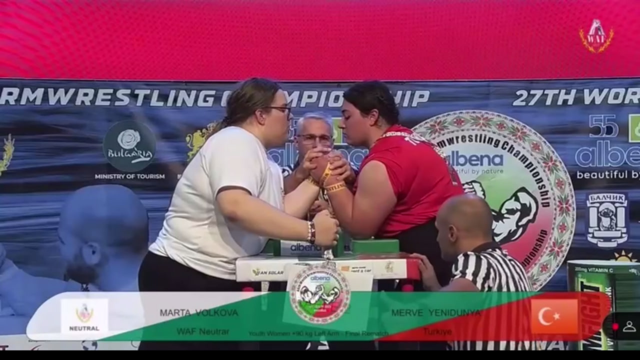Уроженка Нижнекамска Марта Волкова одолела противницу из Турции Мерве Йенидюнйа на первенстве мира U23 по армрестлингу. Об этом в своем телеграм-канале сообщил глава Нижнекамского района РТ Радмир Беляев. Она стала победительницей в соревновании на левую руку.